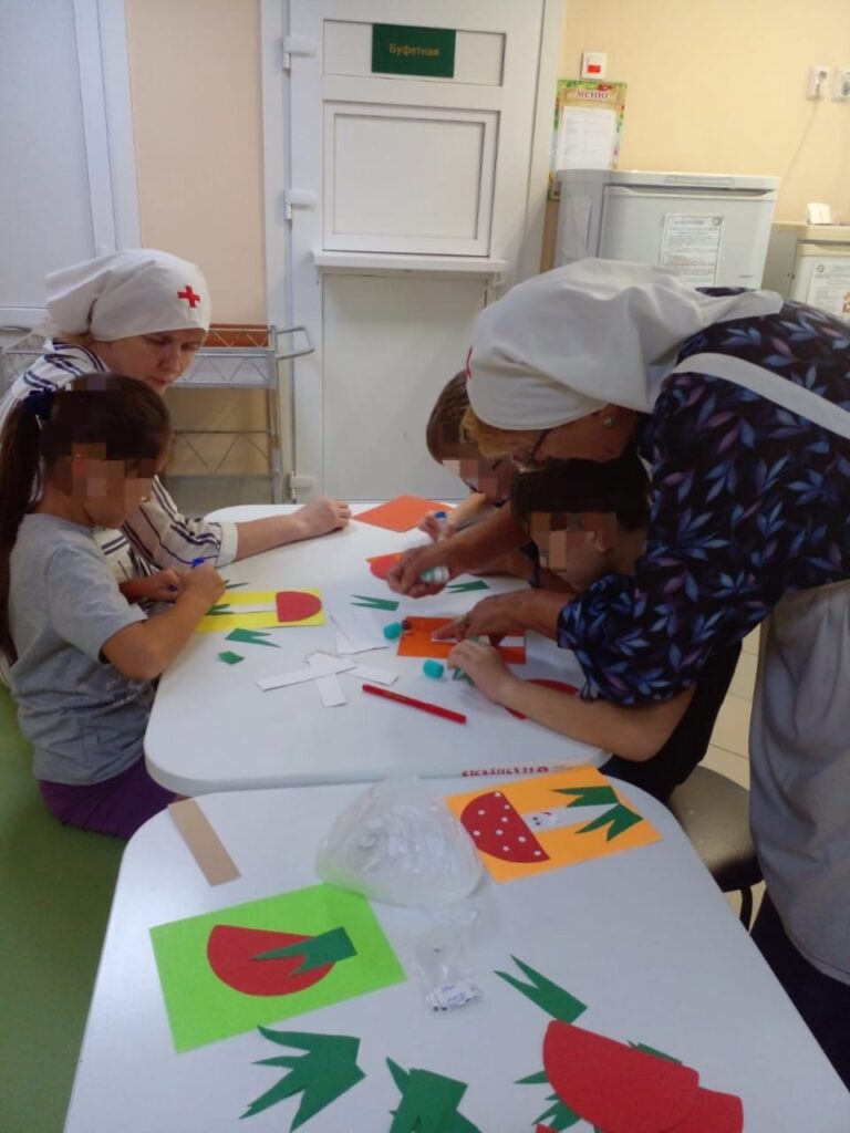 После молебна сёстры милосердия развлекали болящих ребят совместным изготовлением поделок.