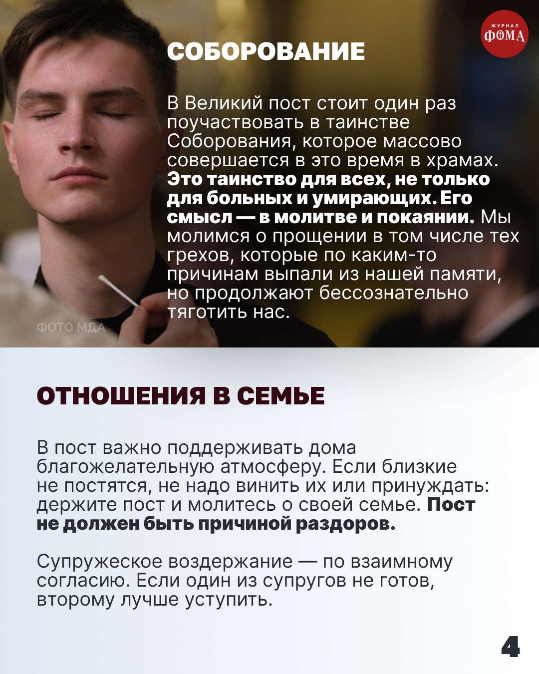 Вначале важно определиться с целью. Смысл Великого поста — во внутренней подготовке к празднованию Пасхи, а не в виртуозном продумывании меню без яиц, мясных и молочных продуктов. Внутренняя подготовка — это приближение ко Христу и образу жизни, к которому Он призывал. Все пищевые и прочие ограничения, которые составляют неотъемлемую и обязательную часть поста, — средства для этого.