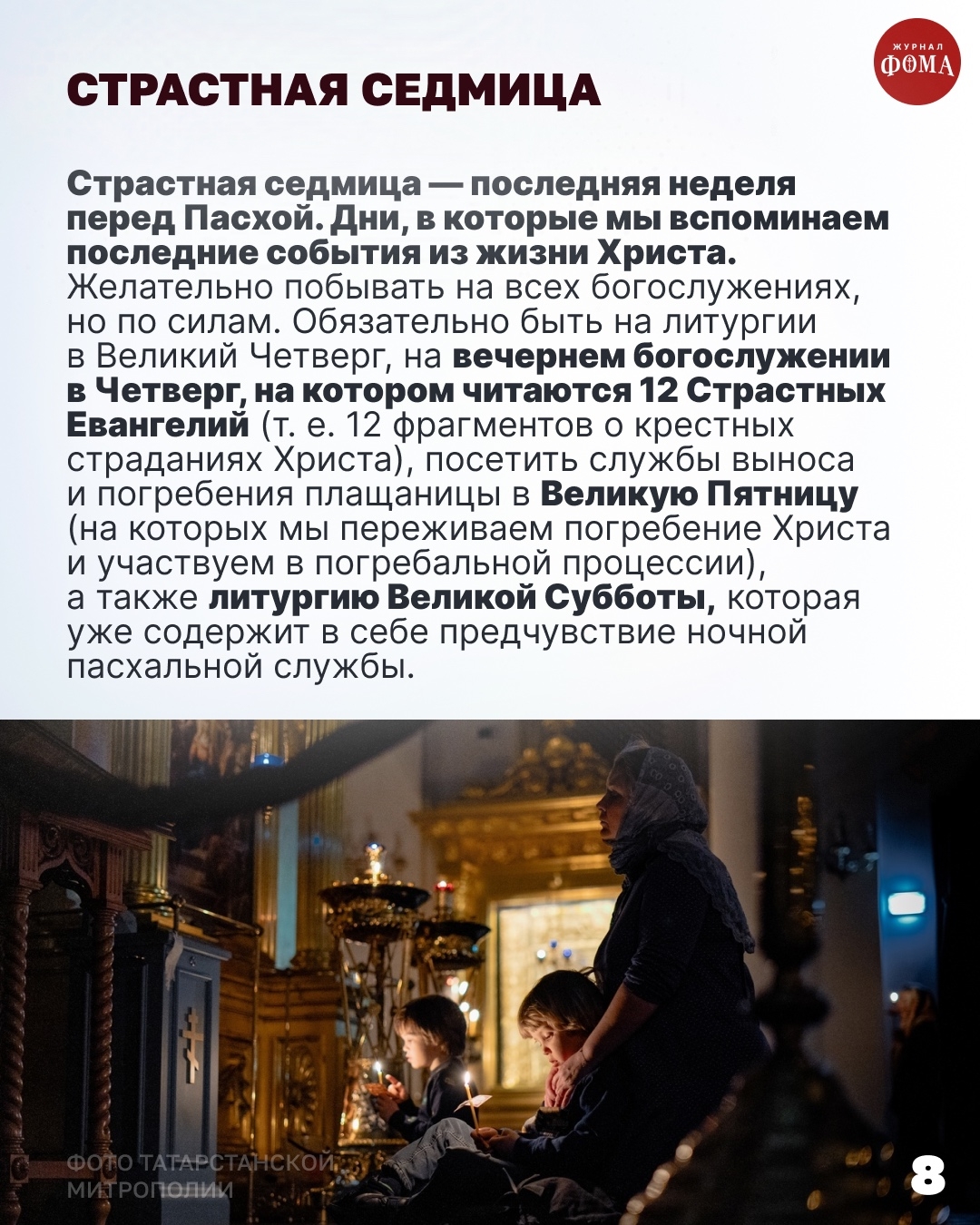 Духовную борьбу и изменение образа мыслей и действий (по-церковному — покаяние) невозможно вести в одиночку, без помощи Божией и поддержки других христиан. Поэтому в период Великого поста рекомендуется чаще бывать на богослужениях (не только воскресных), чтобы молиться Богу вместе с другими членами Церкви Христовой.
