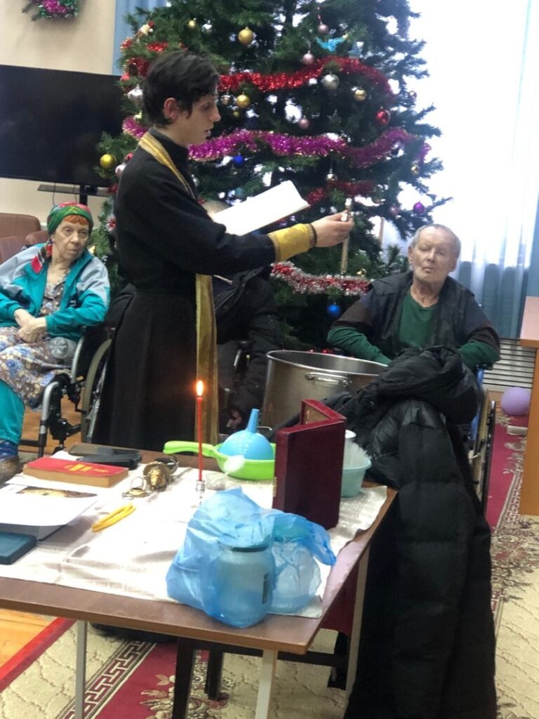 В геронтологическом центре «Именлек» клирик собора Рождества Пресвятой Богородицы иерей Димитрий Назаров также освятил воду в честь праздника Крещения Господня. На молебне присутствовало 33 насельника. По окончании молебна братья и сёстры милосердия раздавали воду всем желающим.
