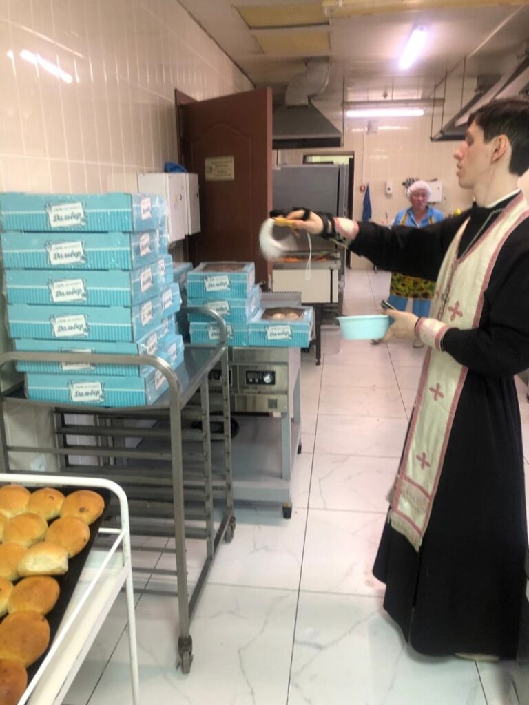 — в геронтологическом центре «Именлек» братья и сёстры милосердия сначала оказали помощь в кормлении обедом слабых жителей, потом помогли людям собраться на праздничное богослужение в актовом зале. Был прочитан Пасхальный канон. Клирик Свято-Сергиевского храма г. Уфы иерей Димитрий Назаров окропил святой водой молящихся, зачитал послание Патриарха. На общей молитве присутствовало 35 человек. Затем батюшка освятил куличи в столовой;