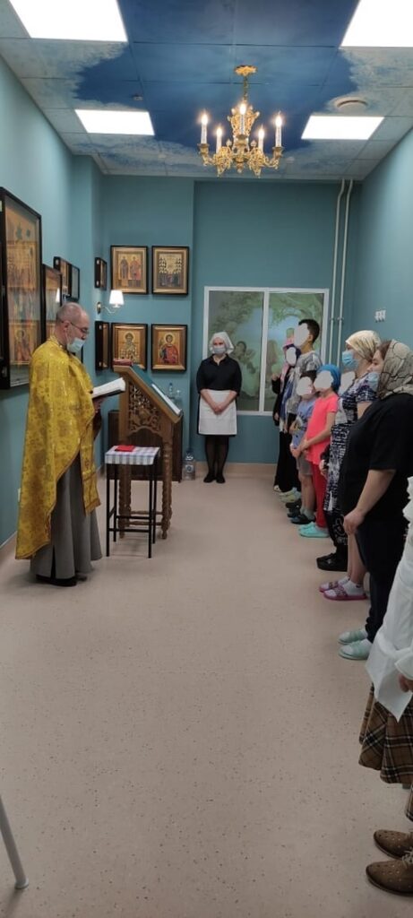 Священник отслужил Божественную Литургию. На богослужении было 6 человек. После Литургии священник и помогающие сёстры прошли по палатам, причастив 13 человек, из них 6 детей. Один болящий принял Святое Крещение.