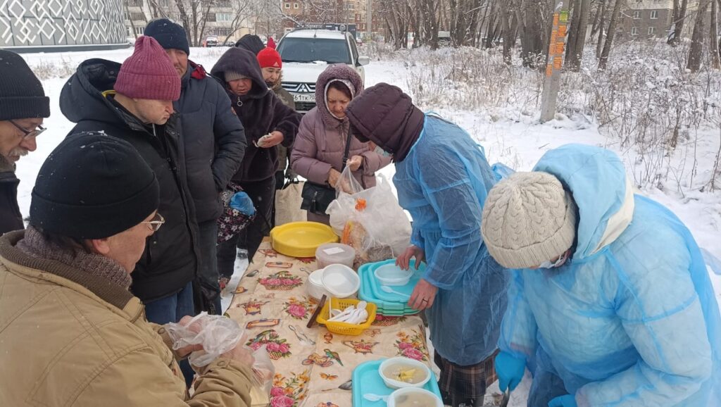 8 декабря, как и каждое воскресенье, кормили бездомных людей за Гагаринским рынком. На этот раз в меню были куриная лапша, гречневая каша с сосисками, котлетами и варёной колбасой, ароматный и вкусный компот из лесных ягод. Накормили 15 человек. Всё, что не съедено, сёстры отдали «на вынос». Кроме еды, ещё раздали нуждающимся тёплые вещи.