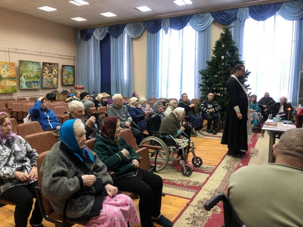 1 декабря братья и сёстры милосердия отправились на воскресное служение в геронтологический центр «Именлек». С большинством жителей центра братья и сёстры знакомы давно, между ними сложились тёплые дружеские отношения. Насельники ждут их, чтобы пообщаться, получить отклик на свои просьбы, но в первую очередь, для того, чтобы вместе помолиться. В это воскресенье на общей молитве было 36 человек.