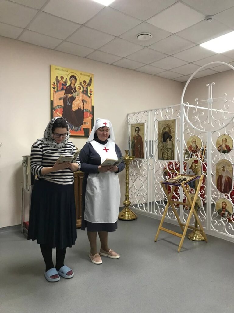 В пятницу, 29 ноября, состоялось очередное служение в Уфимском хосписе. Сёстры милосердия обошли все палаты, приглашая на общую молитву в домовой храм всех, кому позволяет состояние здоровья. Собрали записки на молебен. На общую молитву пришло двое болящих. Прочли Акафист великомученику и целителю Пантелеимону. Затем несколько глав из Закона Божьего.