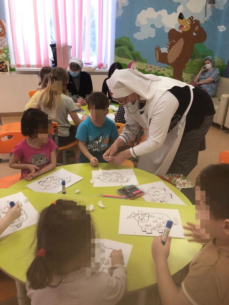 В этот же день было служение в Детском отделении противотуберкулёзного диспансера. Маленькие пациенты раскрашивали картинки, которые подготовили наши сёстры. Раскраски при всей своей видимой простоте приносят большую пользу для развития ребёнка. Они приобщают маленького человека к искусству живописи. В игровой форме расширяются представления детей об окружающем мире. И конечно же, детишки получают положительные эмоции.