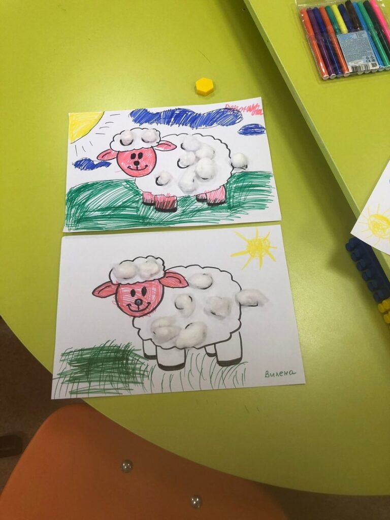 В этом занятии приняло участие 20 малышей, которые каждый на свой художественный вкус раскрашивали барашков на фоне природы. После завершения творческой части занятия с ребяшками поиграли в подвижные игры.