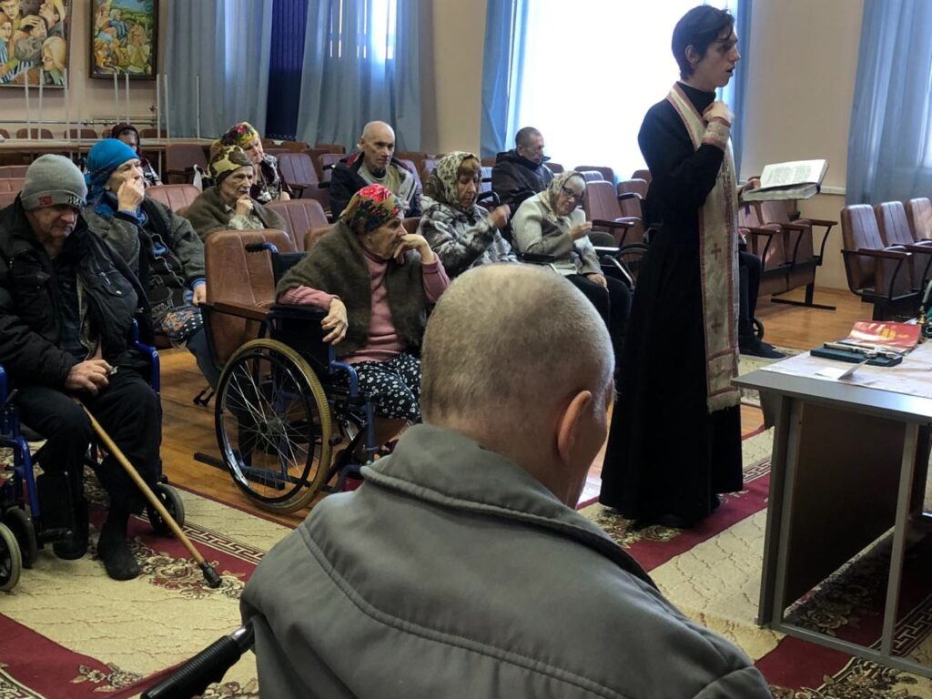 Братья и сёстры милосердия были на служении в геронтологическом центре «Именлек». Клириком кафедрального собора Рождества Пресвятой Богородицы г. Уфы иереем Димитрием Назаровым был отслужен молебен. С помощью наших братьев и сестёр вместе помолиться собралось 35 жителей. По окончании молебна один человек исповедовался.