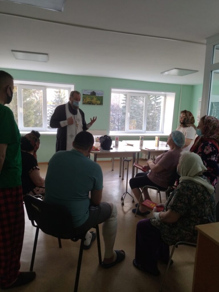 3 апреля клирик Покровского храма г. Уфы иерей Борис Стоцкий навестил взрослое отделение Республиканского клинического противотуберкулёзного диспансера. О. Борис совершил молебен для сотрудников, провёл беседу с болящей и благословил её на излечение.