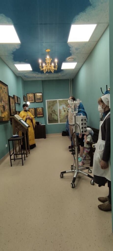 В субботу 10 мая в Республиканском центре детской онкологии и гематологии клирик Свято-Сергиевского собора г. Уфы иерей Артемий Колобов отслужил молебен о здравии. На соборной молитве присутствовало 4 пациента (1 ребёнок, 3 взрослых). О. Артемий с помощью сестры милосердия причастил в палате болящего ребёнка.