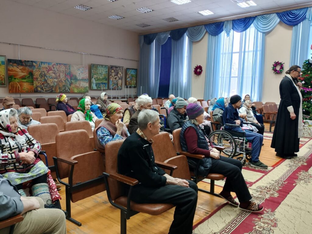 В минувшее воскресенье, 22 декабря, служили также в геронтологическом центре «Именлек». На молебне присутствовало 29 человек. После молебна братья и сёстры милосердия, как обычно, общаются с подопечными, помогают в просьбах.