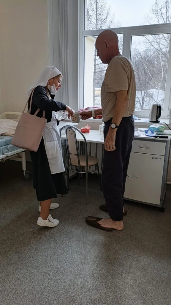 — в Республиканском клиническом онкологическом диспансере сёстры милосердия обошли палаты старого и нового корпусов, составили списки желающих причаститься в предстоящую субботу, а также отвечали на вопросы пациентов о подготовке к Таинству.
