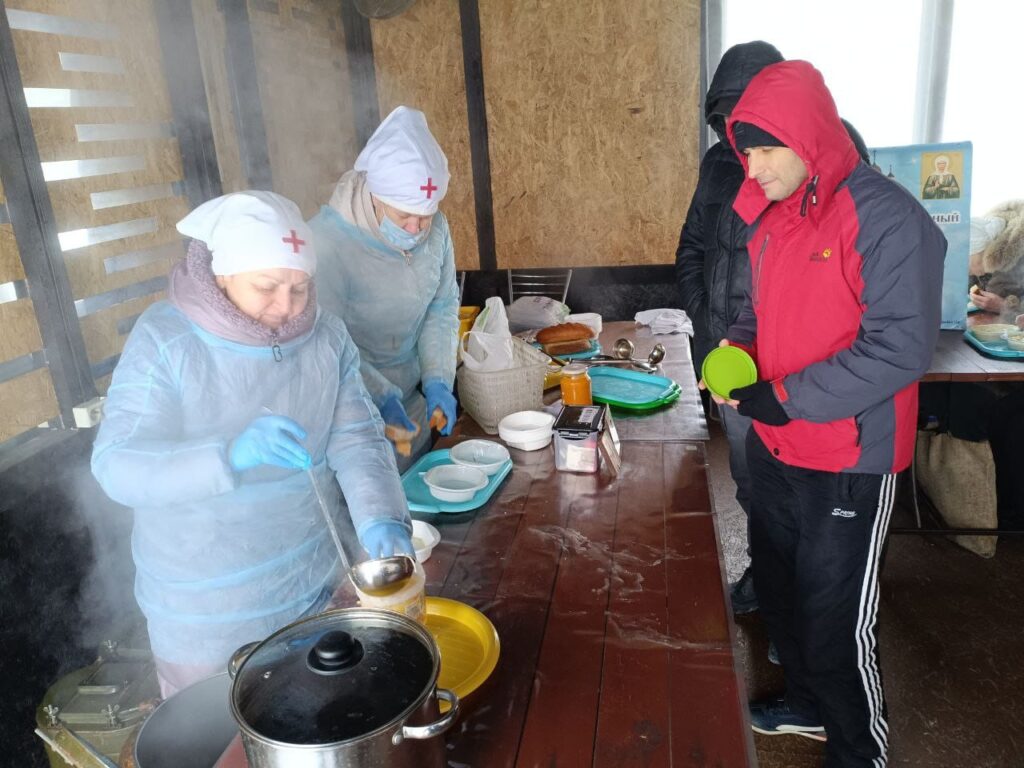 — в кафе «Берег+» раздавали обед бездомным и малоимущим. На закуску была кабачковая икра, на первое — лапша с курицей, на второе — гречневая каша с 2 котлетами, на третье — чай с вафлями и конфетами. Директор кафе р.Б. Григорий побаловал наших подопечных десертом — пирожными. Во славу Божию накормили 17 человек;