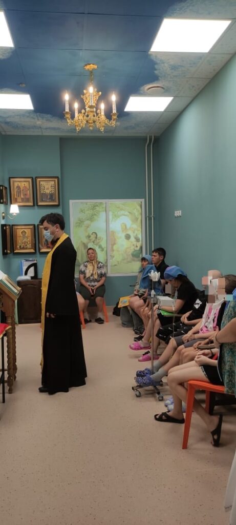 В субботу 19 июля в Республиканском центре детской онкологии и гематологии клирик Свято-Сергиевского собора г. Уфы иерей Артемий Колобов совершил краткое богослужение и причастил 7 детей,