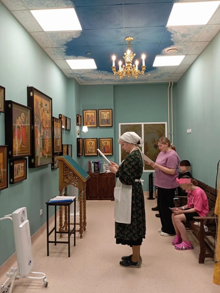 — в домовом храме Уфимского хосписа сёстры милосердия прочитали Акафист святому великомученику и целителю Пантелеимону, за чтением которого помянули болящих. Затем читали Закон Божий: