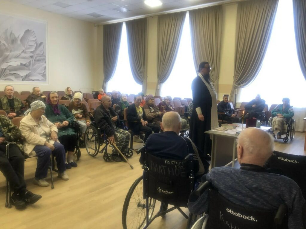 — в геронтологическом центре «Именлек» служили 5 членов сестричества милосердия и 1 доброволец. В начале служения помогали кормить обедом лежачих жителей. Потом собрали людей в актовом зале, где клирик кафедрального собора Рождества Богородицы г. Уфы иерей Алексий Словоохотов совершил молебен. На богослужении было 32 человека. По окончании общей молитвы помогли жителям вернуться в свои комнаты и продолжили с ними общение;
