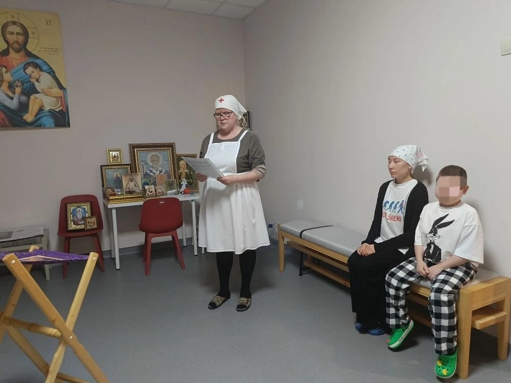 — в Республиканском клиническом онкологическом диспансере сёстры милосердия обошли палаты нового корпуса, информируя пациентов о возможности причаститься в предстоящую субботу.