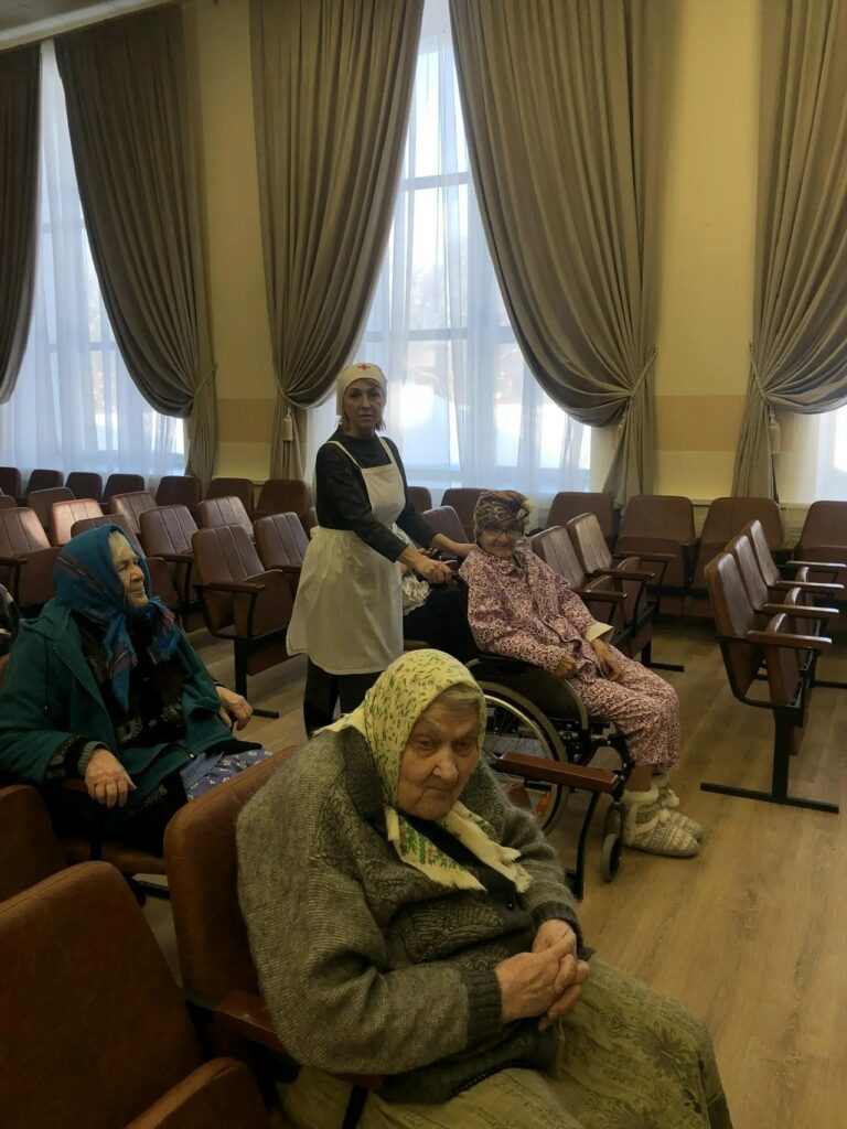После богослужения наши сёстры и брат общались с жителями и помогали им с бытом в комнатах;