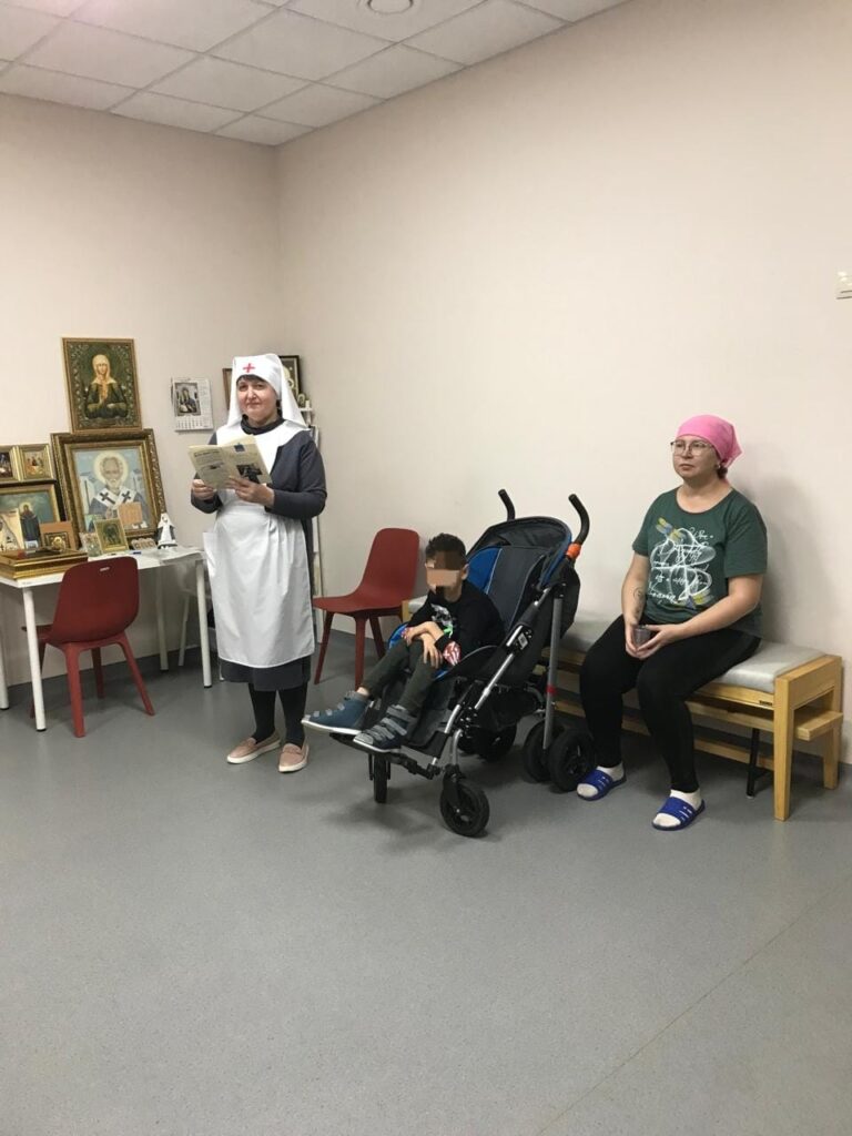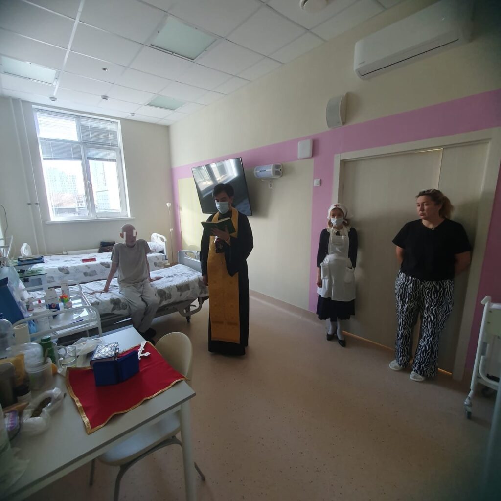 — в Республиканском центре детской онкологии и гематологии. Помолиться приходили болящий ребёнок и мать одного из болящих детей.
