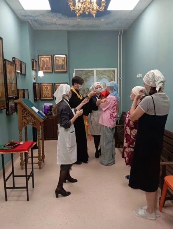— в геронтологическом центре «Именлек» на служении было 4 члена сестричества и 2 добровольца. Как обычно, начали служение с помощи в кормлении обедом немощных жителей. Затем переместились в актовый зал на богослужение. Клирик кафедрального собора Рождества Богородицы иерей Алексий Словоохотов отслужил молебен о здравии и литию. На соборной молитве присутствовало 16 жителей. Выражаем признательность добровольцам за участие в служении;