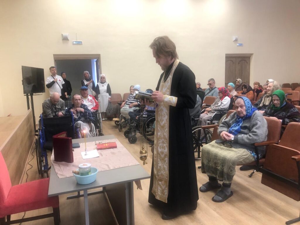 — в геронтологическом центре «Именлек» члены сестричества милосердия и добровольцы кормили обедом немощных насельников. Затем помогли маломобильным жителям переместиться в актовый зал, где клирик кафедрального собора Рождества Пресвятой Богородицы иерей Андрей Гречушкин отслужил молебен о здравии и литию. На богослужении присутствовал 31 житель;