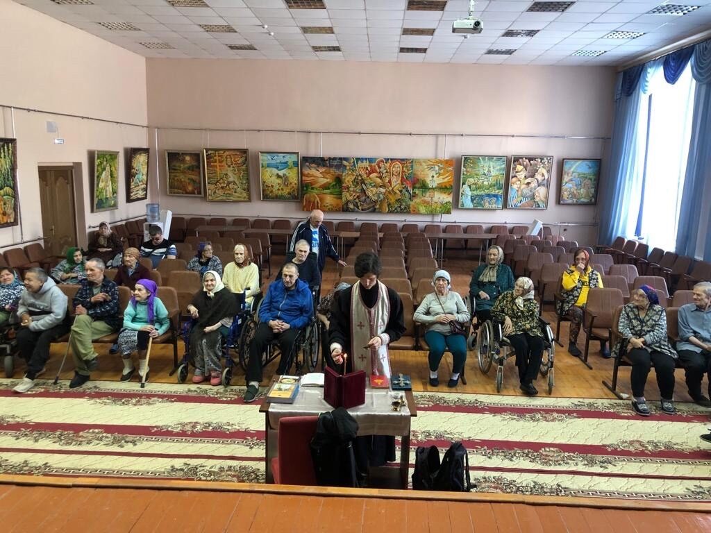В воскресный день в геронтологическом центре «Именлек» помолиться за кратким богослужением пришло 27 подопечных.
