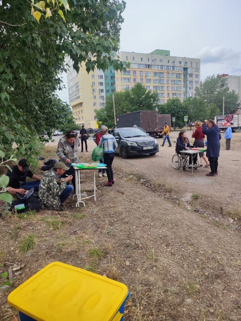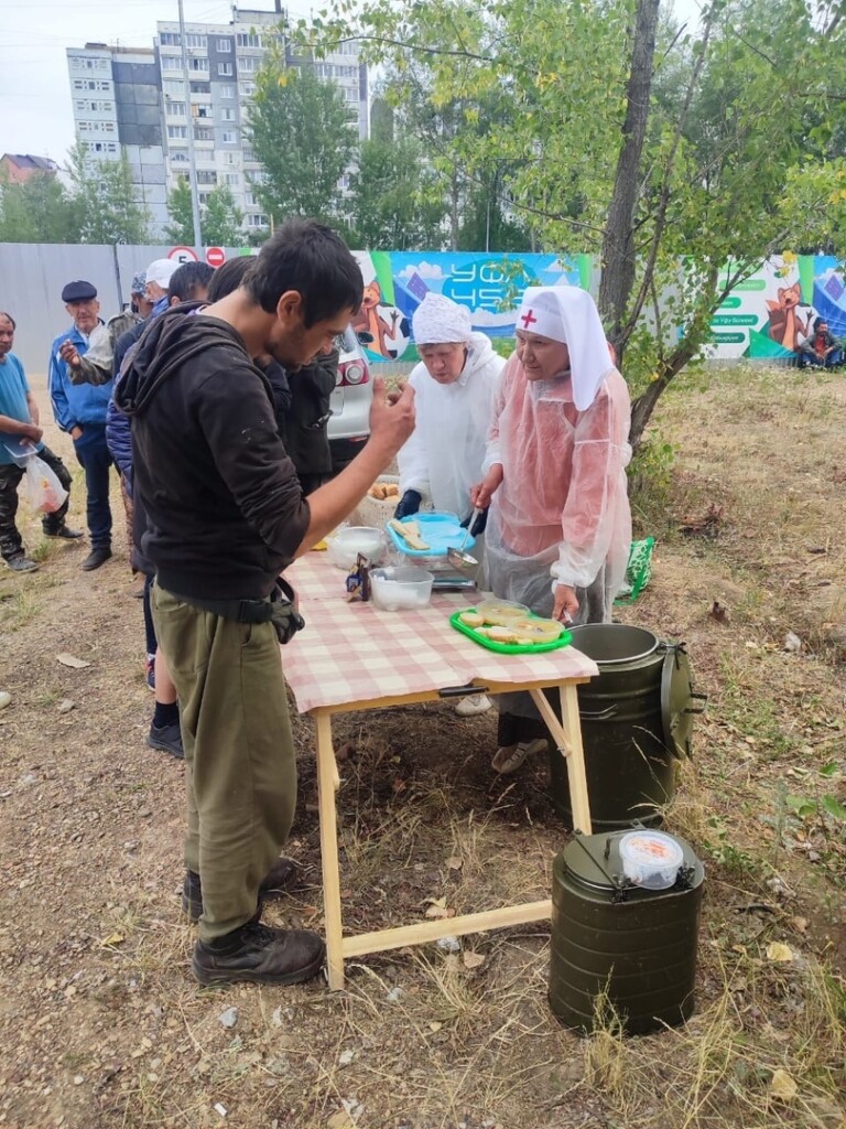 За Гагаринским рынком горячим обедом накормили 41 человека, желающим — раздавали вещи.