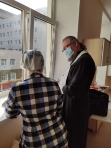 В онкодиспансере в паллиативном отделении — каждый будний день утром, во вторник там причастилось 8 человек. В пятницу сестры делали обход в старом корпусе РКОД, в субботу утром там причастилось также 8 человек.