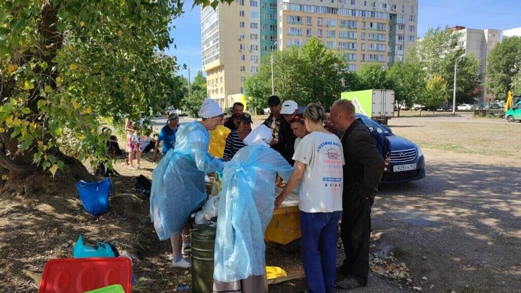 В воскресенье близ Гагаринского рынка в Сипайлово накормили горячим обедом нуждающихся — к нам приходят не только бездомные, но и малоимущие, инвалиды — мы рады всем.